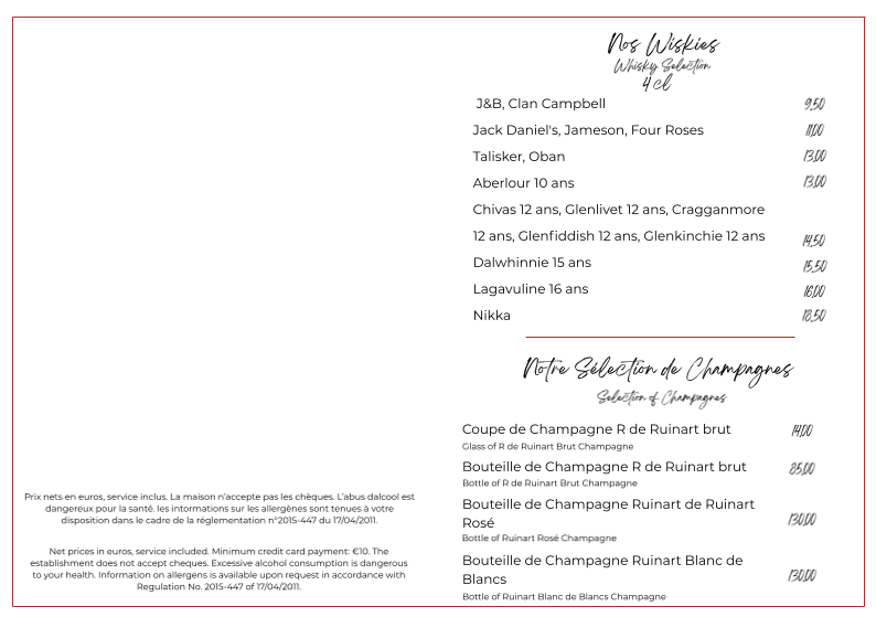 Le Versailles also features an impressive collection of whiskies, ranging from accessible J&B and Jack Daniel’s to premium Lagavuline and Nikka, providing an excellent pairing for any dish. Beer enthusiasts will appreciate the variety of local and international brews, including their signature La Versailles beer.